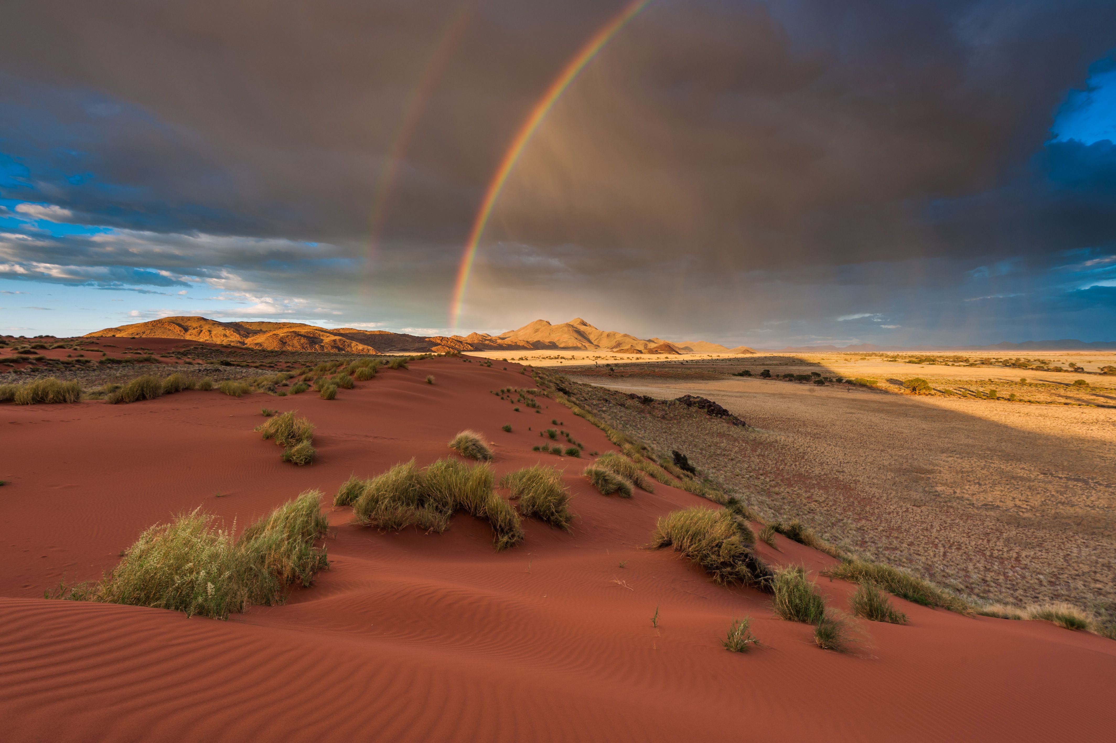 Stretching inland from the Atlantic Ocean, the Namib Desert lies on the coastline of Namibia. The name "Namib" is of the Khoekhoegowab origin and means "vast place", a fitting description of this massive desert! And it is indeed big, extending over 2,000 kilometres and crossing not only over Namibia but also Angola and South Africa's coastlines.